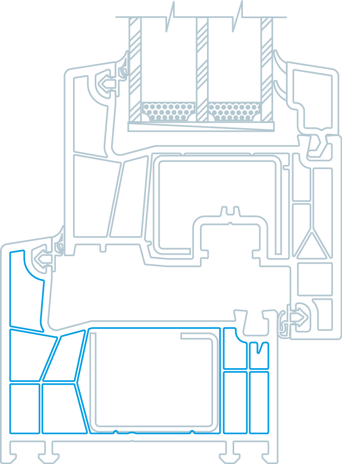 5 air chambers within the frame and the sash for excellent heat insulation.