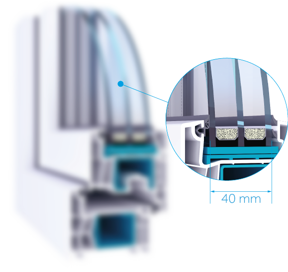 A 40-mm energy-efficient glazing unit for reliable heat insulation (48-mm glazing unit available as an option).
