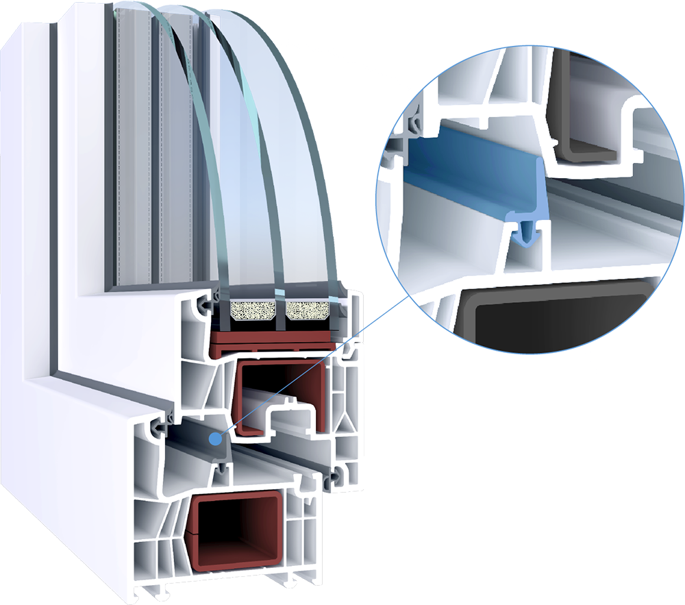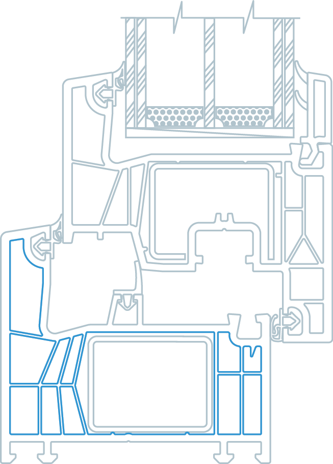 With a mounting depth of 76 mm, multipurpose 48-mm glazing unit, third gasket contour, and 6-chamber profiles, WDS 76 MD windows’ thermal transmittance reaches 0.79 W/m²K, 28% above the 70-mm systems’ average.