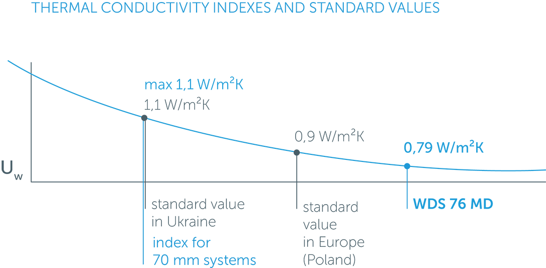 The Ukrainian construction standards are being harmonized with the EU ones. The heat transfer resistance coefficient requirements have become more stringent in Ukraine, coming close to the European level. The best-selling items from our product range currently meet minimally acceptable standards. If the requirements keep rising, the current 70-mm systems won’t be able to keep up with demand.