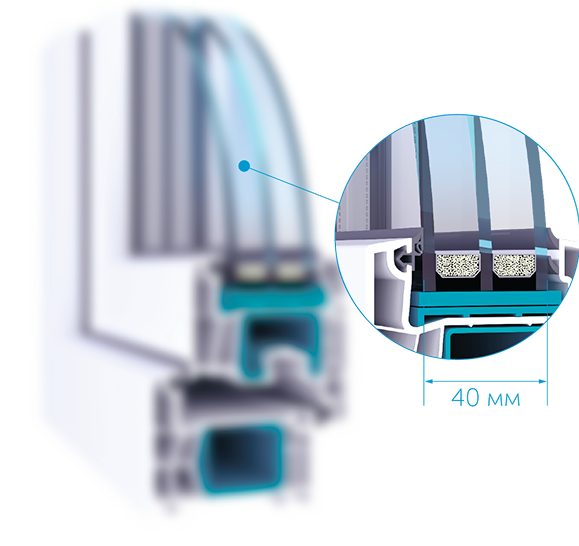 Енергоефективний склопакет 40 мм для надійного теплоз-береження (за необхідності можливе встановлення склопакету 48 мм)