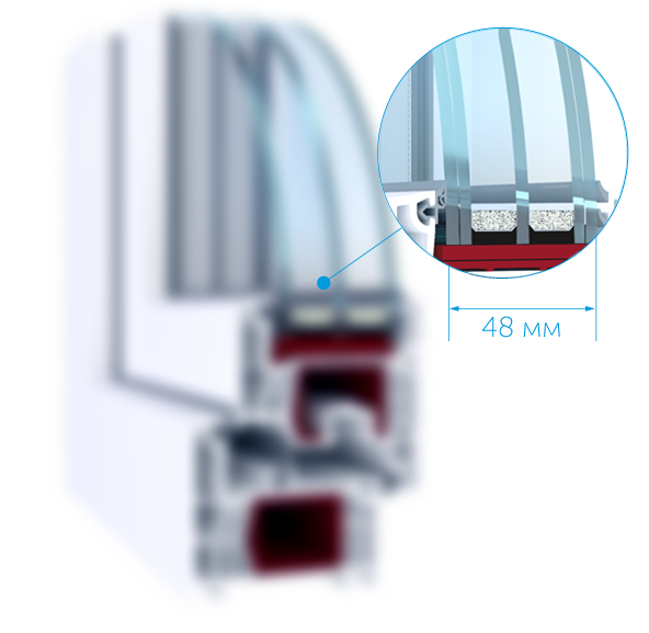 Системи WDS 76 можуть комплектуватися склопакетами 48 мм, що забезпечує: